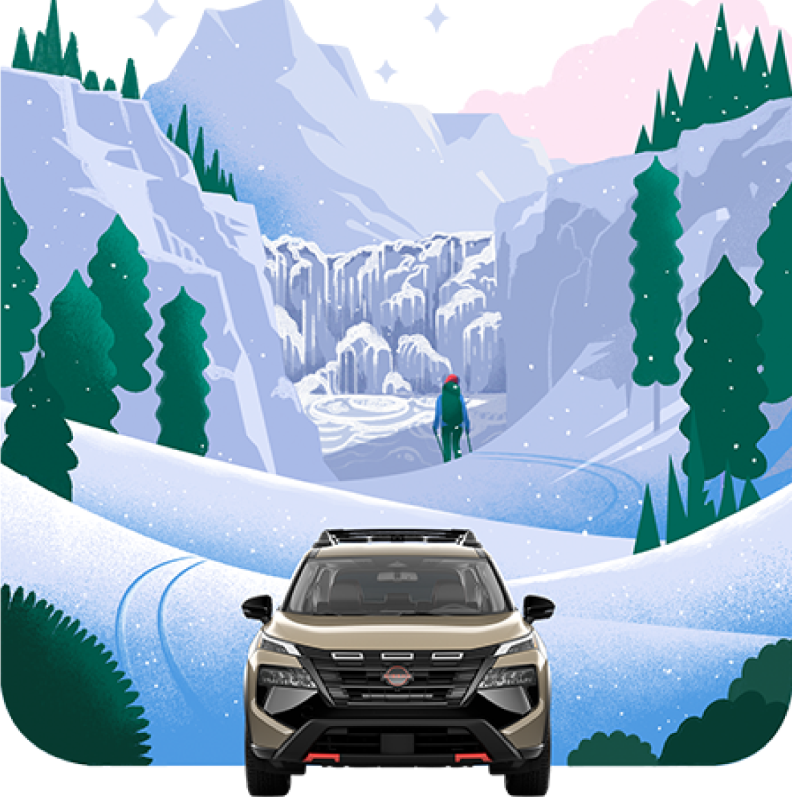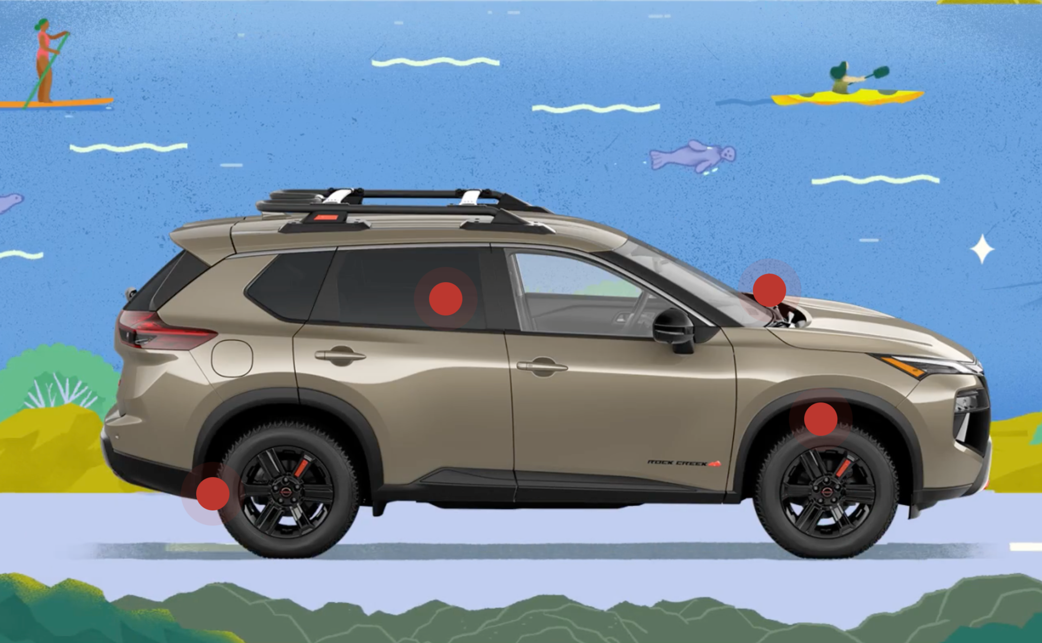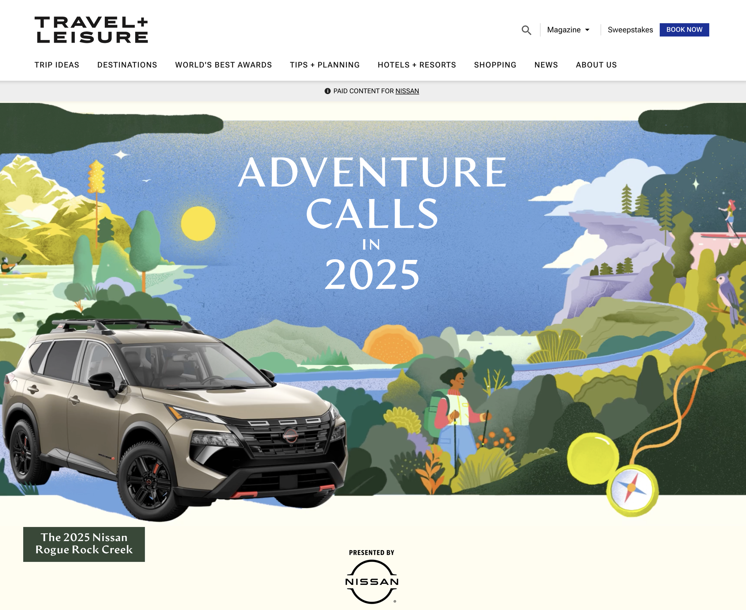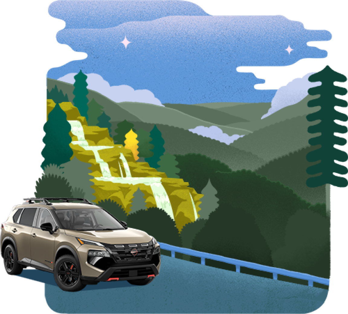 An editorial experience on T+L featuring original illustration and motion-enriched storytelling, spotlighting editor-approved off-the-beaten-path road trips for the Nissan Rogue Rock Creek.